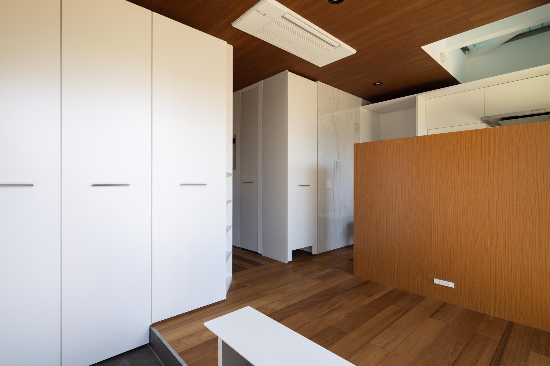 「マゴトノイエ」は、息子の家と娘の家の間にある小さな土地に建てられた、親が終の棲家として過ごすためのお家です。施主は、大きな仏間と、孫たちと一緒に過ごせるリビングを希望されました。 そこで、ご年配の施主が安心して暮らせるよう、生活の拠点を1階に設け、日常の営みがすべて1階で完結できるように計画しました。1階は「ケ」(普段の生活や仕事などの日常)、2階は「ハレ」(儀式や祭り、年中行事などの非日常)という、日本の伝統的な世界観を反映した構成としています。 両隣には息子家族と娘家族が住んでいるため、孫たちが自然と集まれるように工夫しました。ダイニングキッチンを両隣の通路側に配置し、外部には雨に濡れないスペースを設け、さらにベンチを設置することで、家族が気軽に集まり、お茶や食事を楽しみながら交流できる場をつくりました。 また、隣家には美しい和風庭園があり、その持ち主も親しい友人であることから、庭を借景として取り込みました。2階のベランダからは、その庭を眺めて堪能できるように計画しています。 この家は、友人や孫たちが訪れ、賑わいの中で新たな第二の人生を始められるような住まいを目指しました。